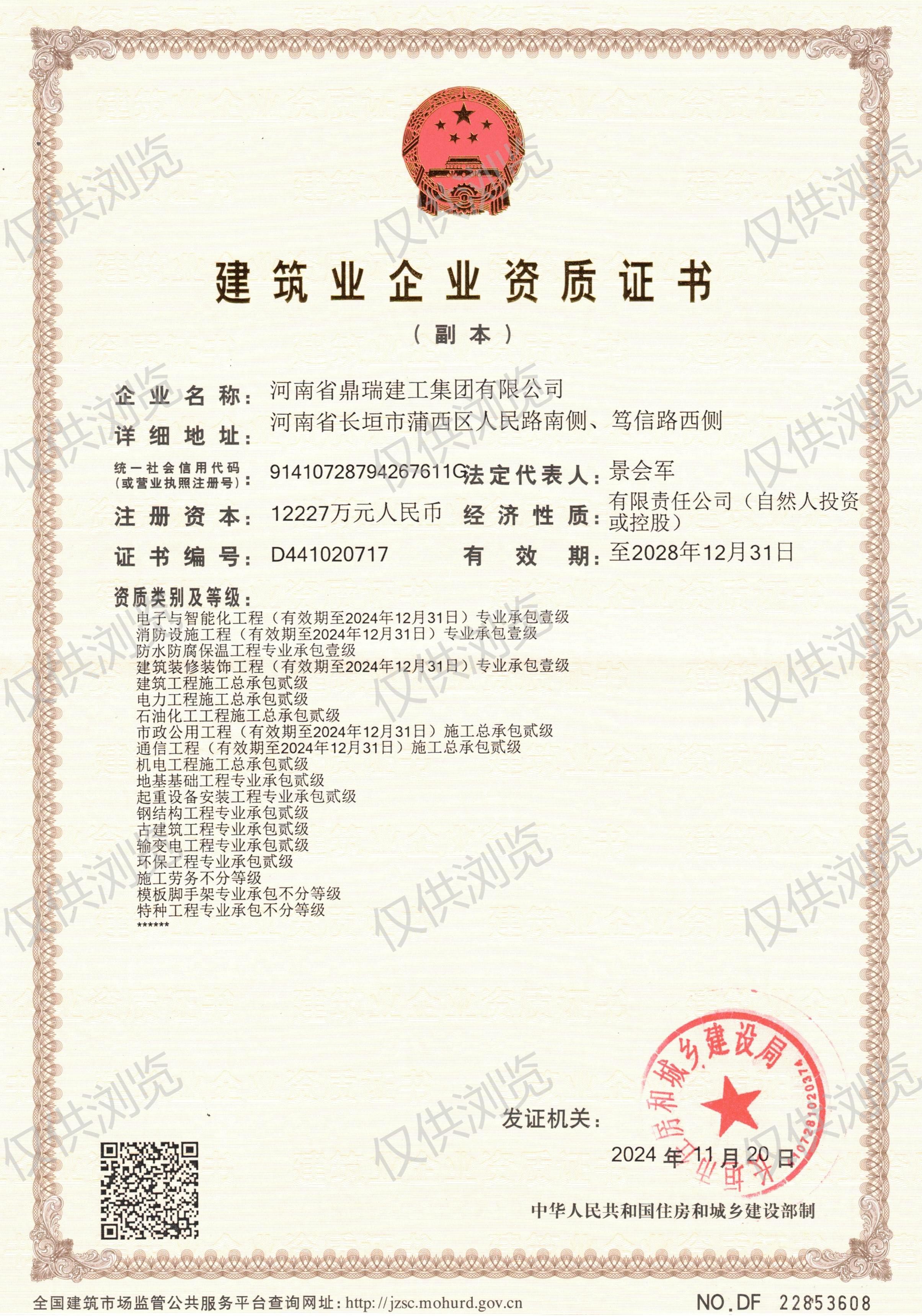 建筑業(yè)企業(yè)資質(zhì)證書